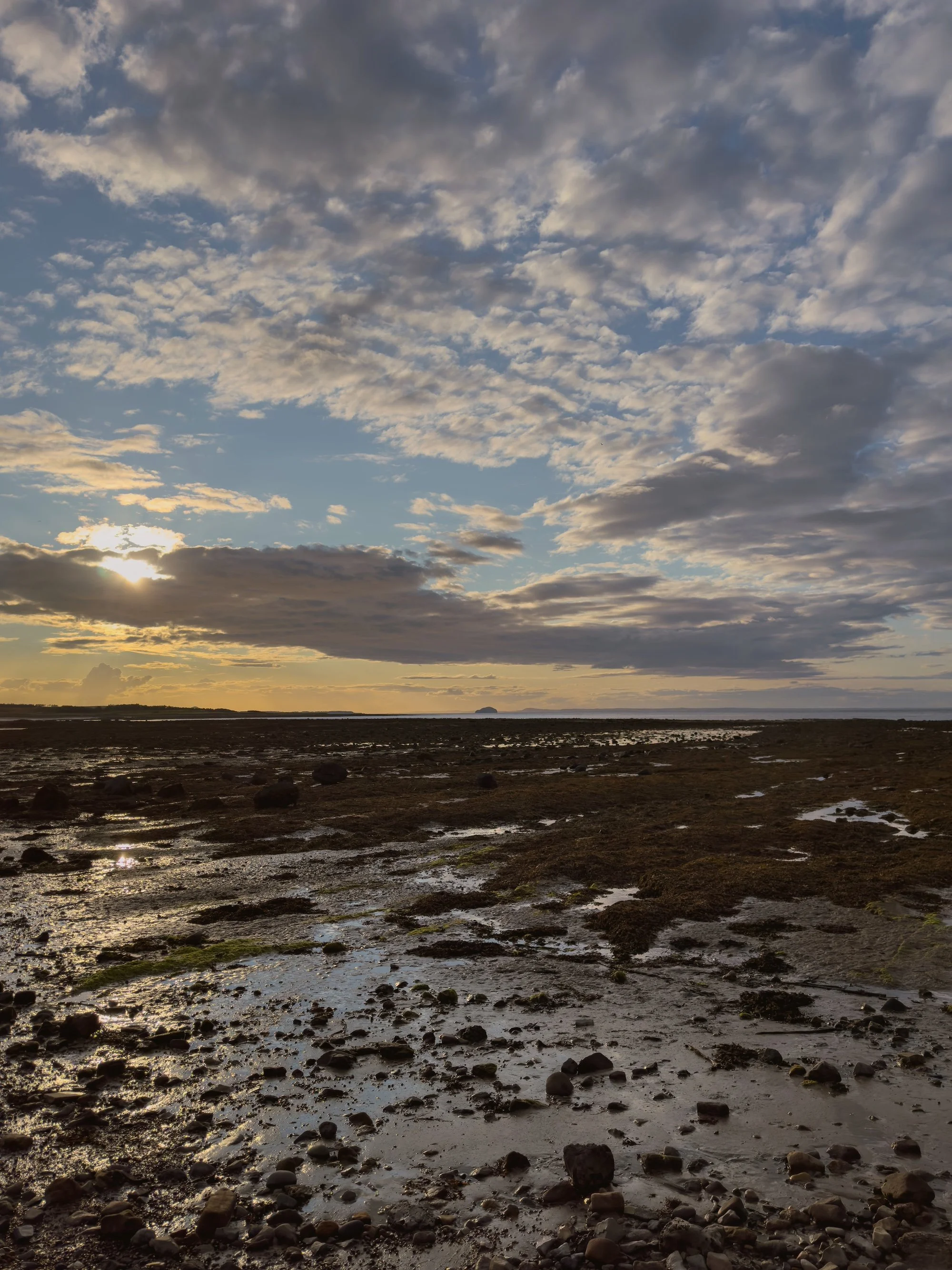 We walked on along the shore, with the white exterior of Torness catching the light in the distance. We’ve done this route a few times now, and while it’s very quiet, you can sometimes get noise from the cement works, and Dunbar landfill site is also nearby (I know - cement plant, power station, landfill site) so that might also contribute some background noise. Why do I mention this? Because, depending on the wind direction, those strange mechanical background noises can be a bit unsettling to canine family members, as we found with Raf on one evening walk here. He settled in time, but still, you can’t pretend that you’re in the middle of nowhere.