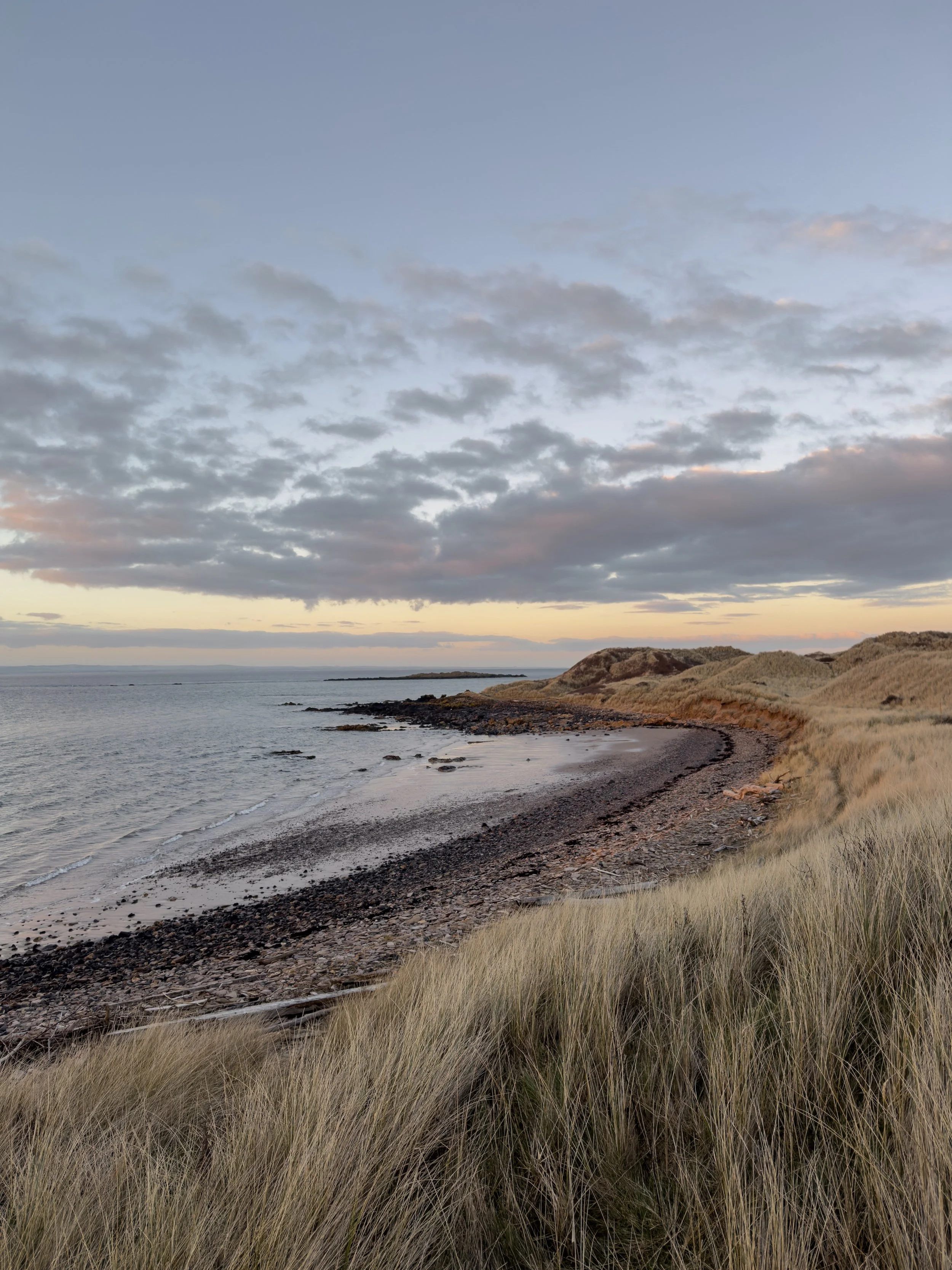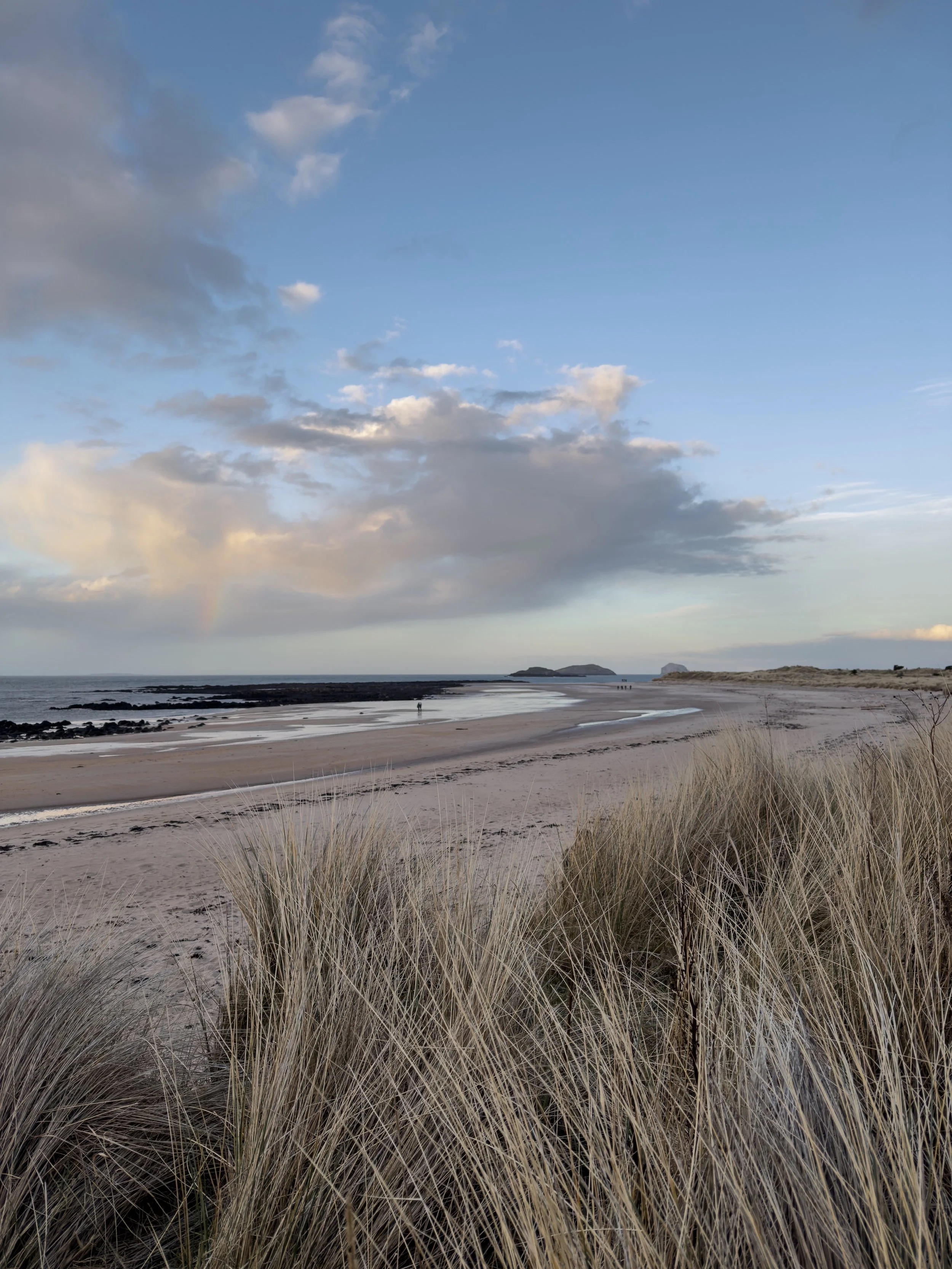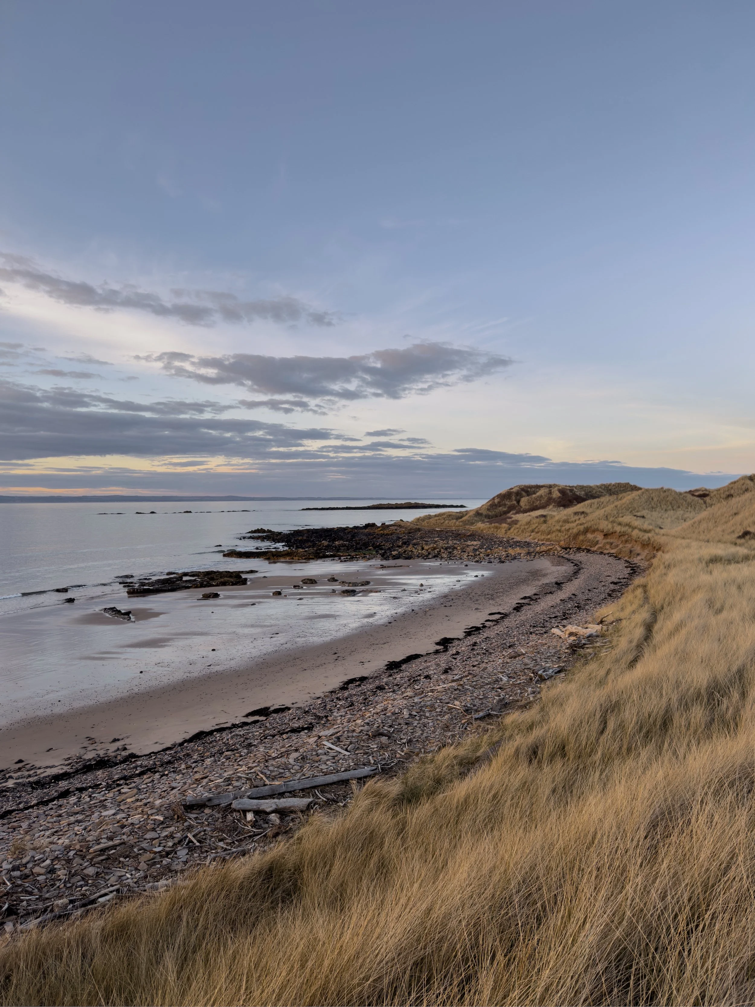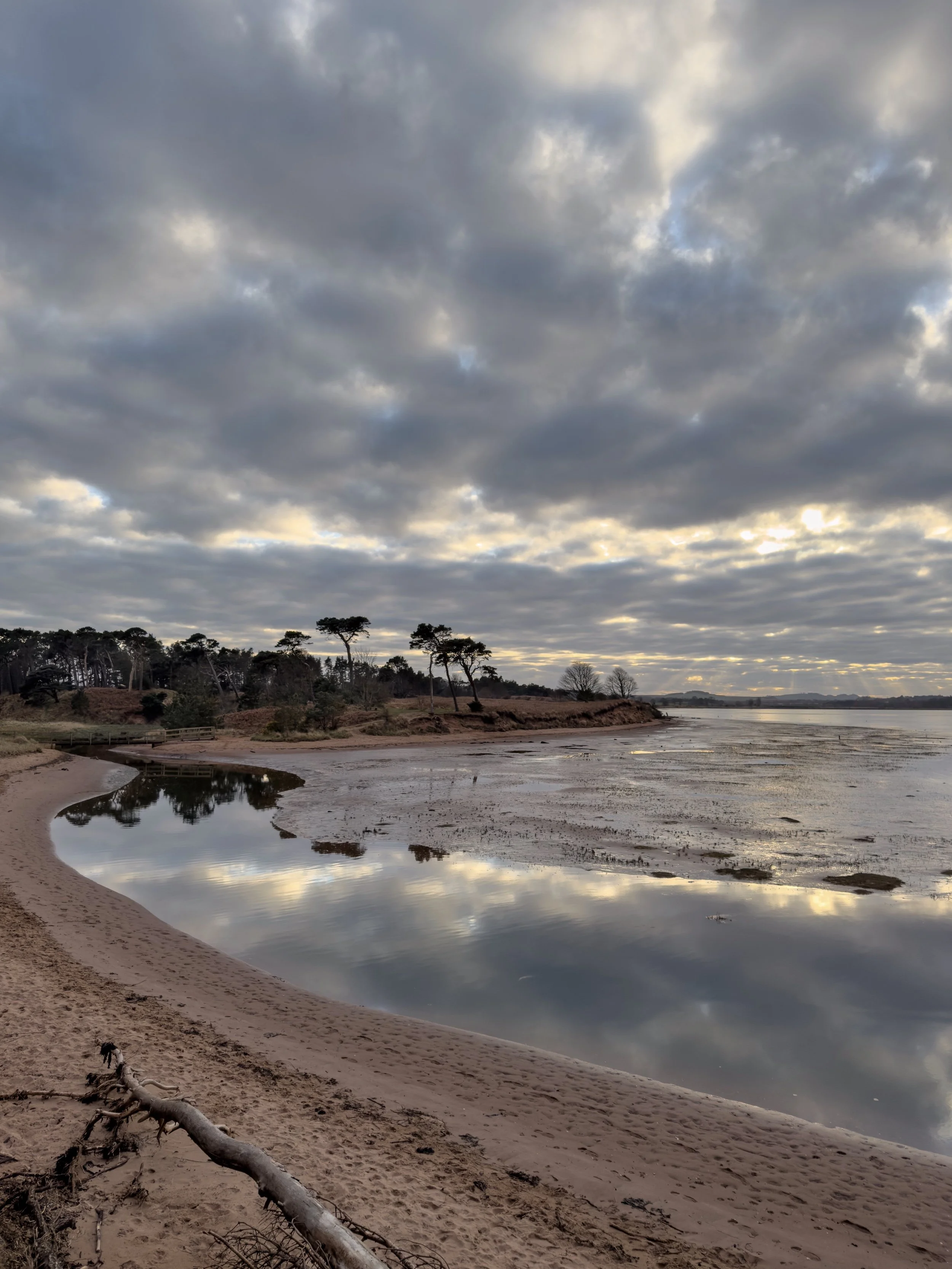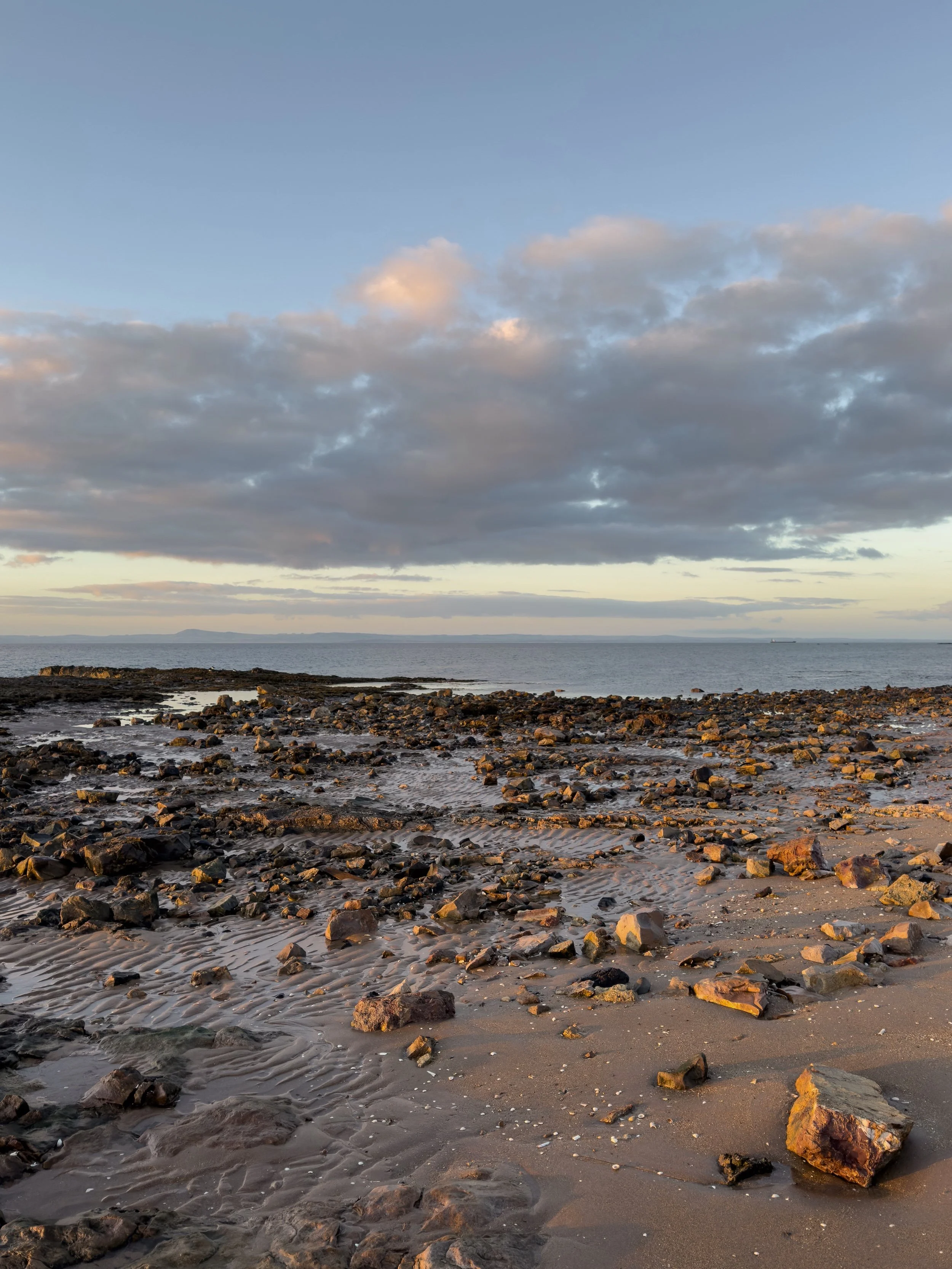 I had a solo walk from Yellowcraig to Gullane on a sunny Saturday when the light was glowing along the shoreline (shared here), softening by the time I’d passed Eyebroughy beach, and I headed on while watching the sun set over the Forth. And there were frozen walks at Yellowcraig and John Muir Country Park below dramatic skies.