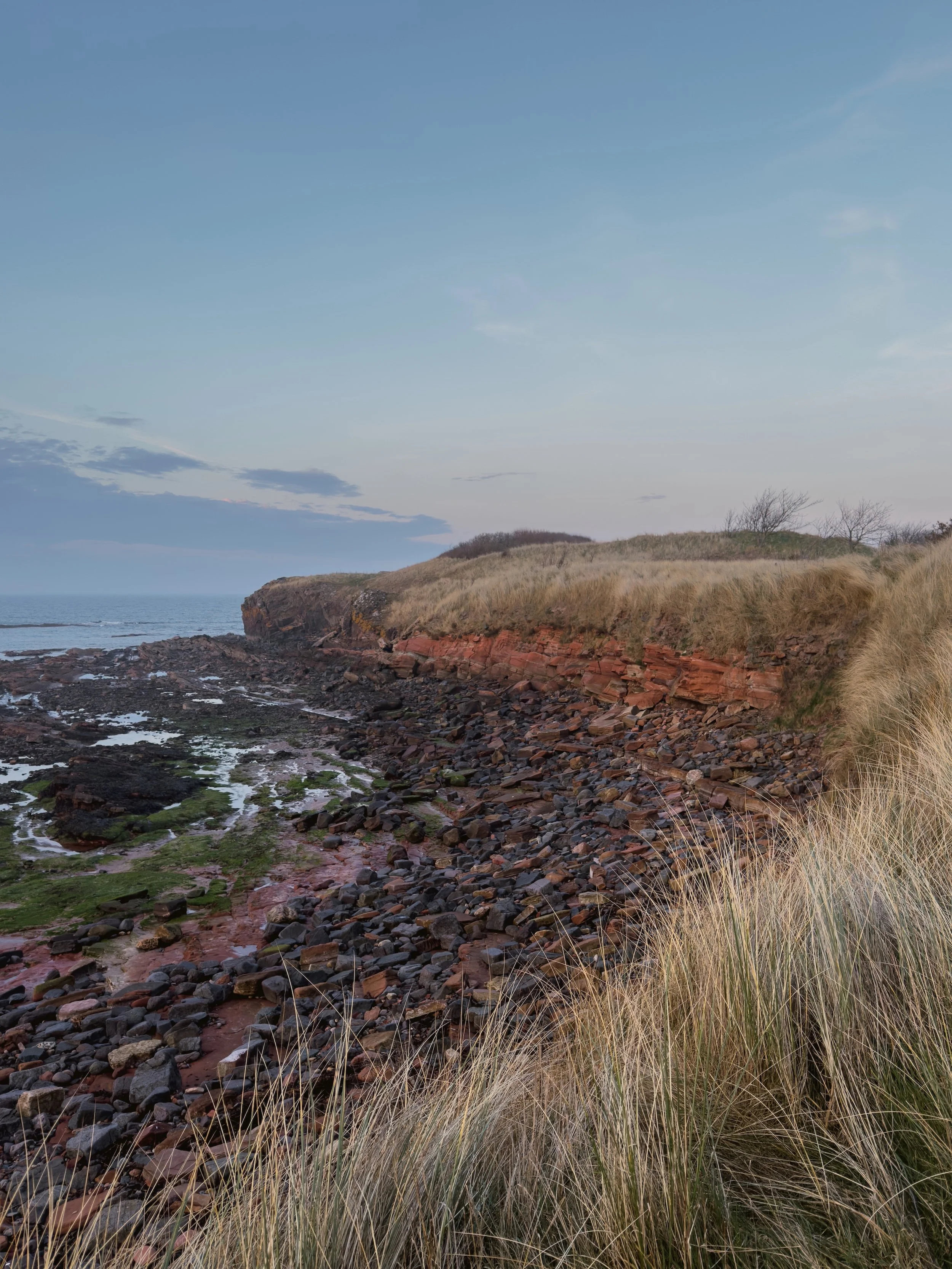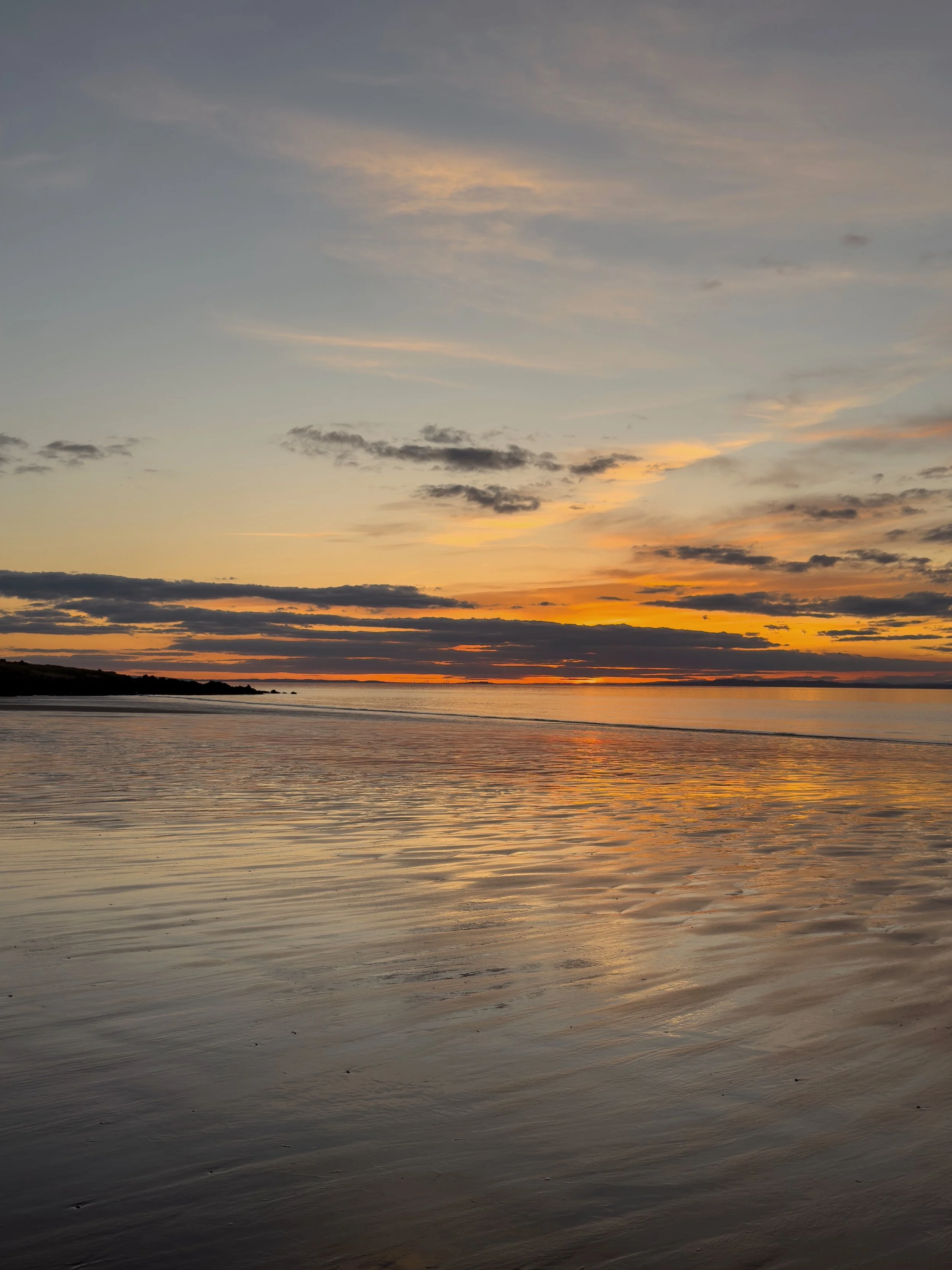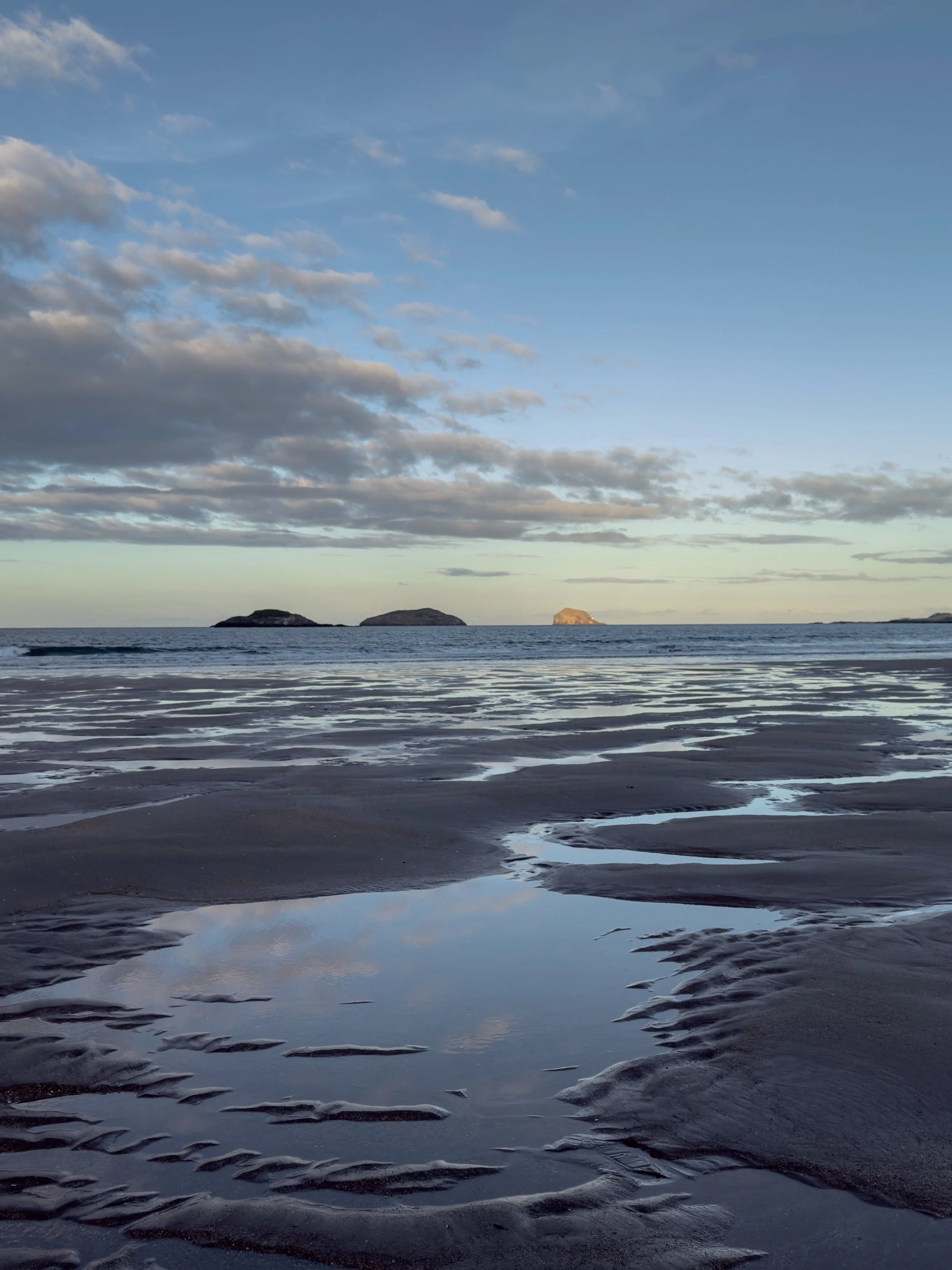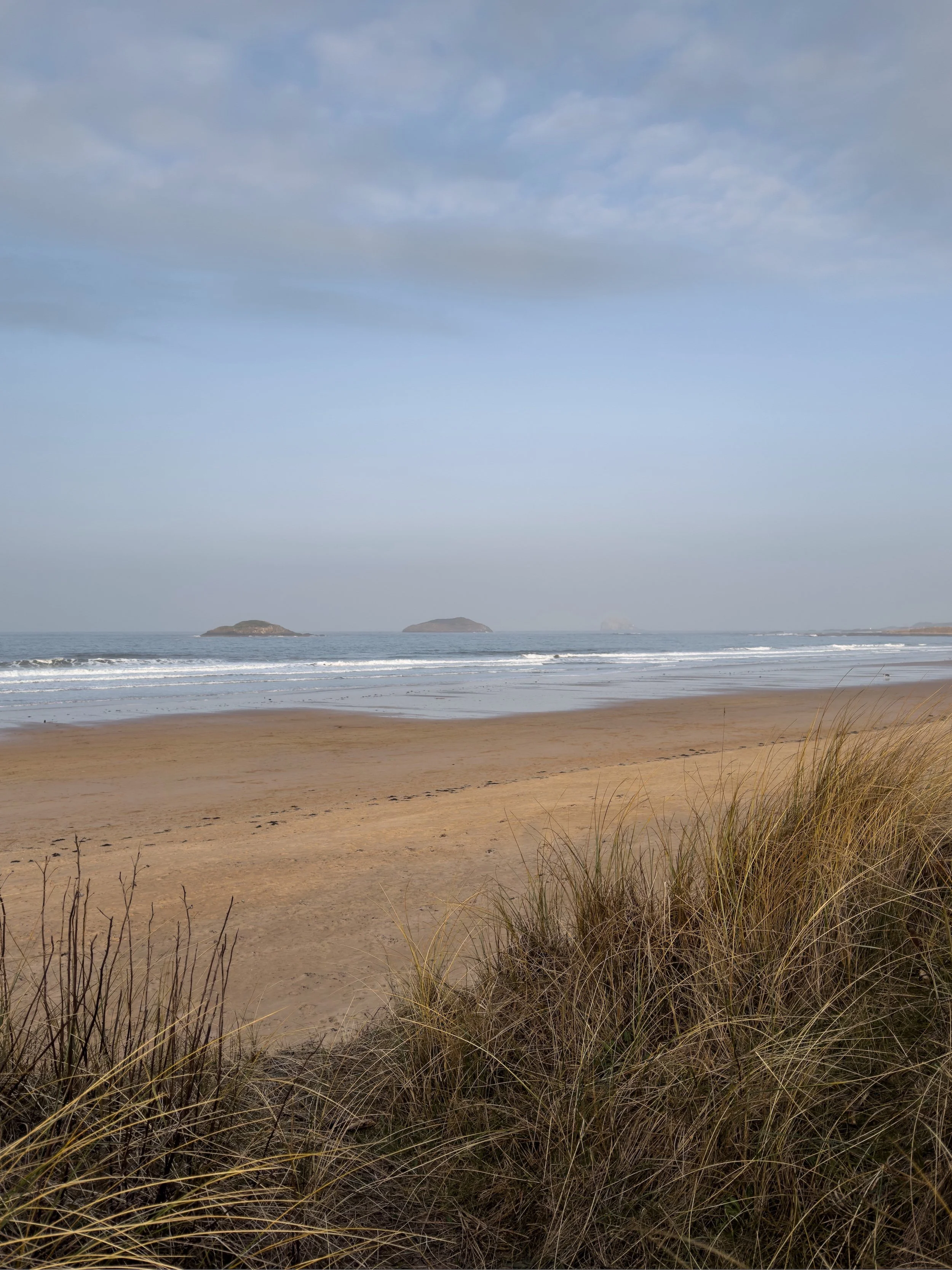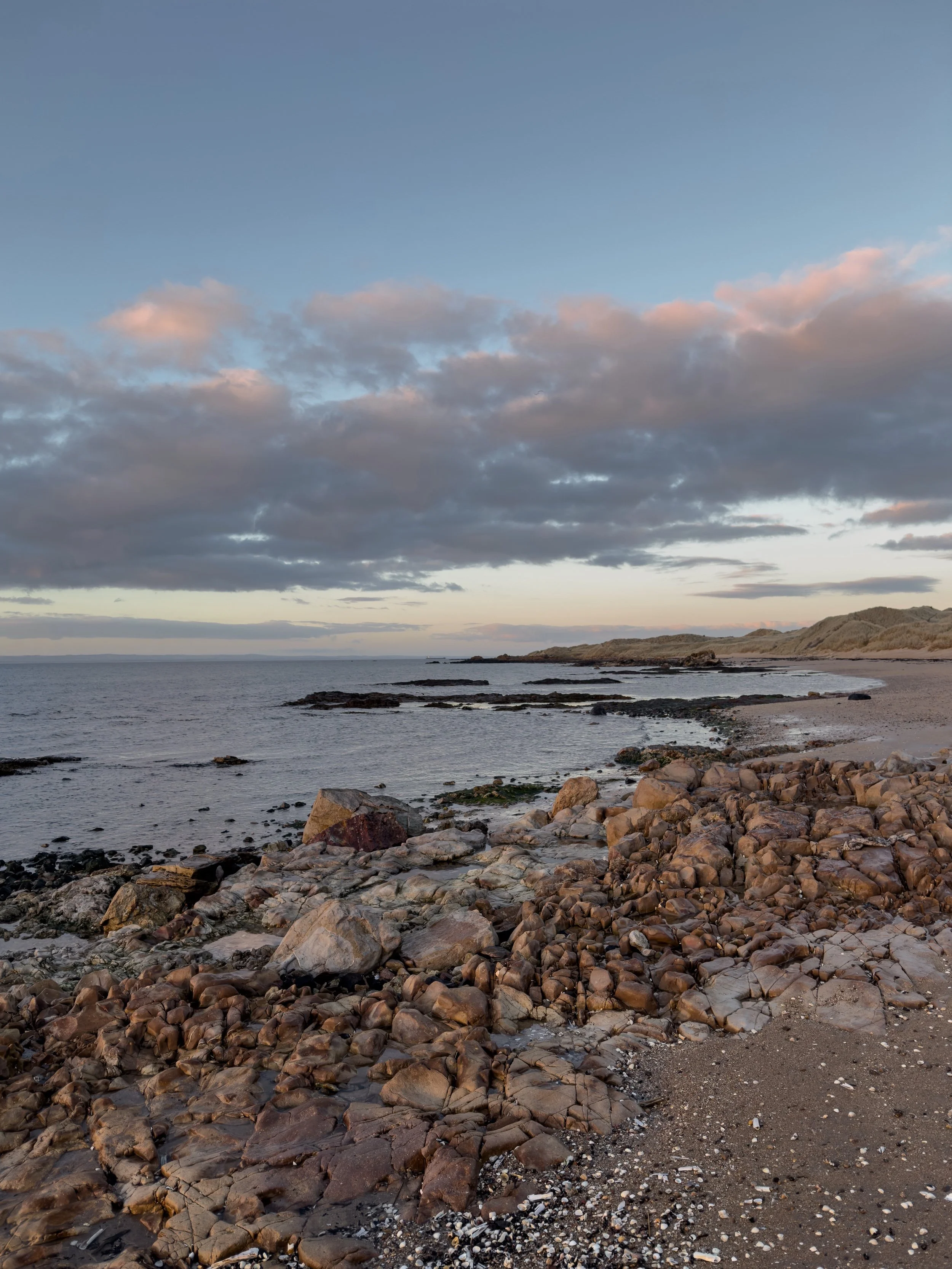 I had a solo walk from Yellowcraig to Gullane on a sunny Saturday when the light was glowing along the shoreline (shared here), softening by the time I’d passed Eyebroughy beach, and I headed on while watching the sun set over the Forth. And there were frozen walks at Yellowcraig and John Muir Country Park below dramatic skies.