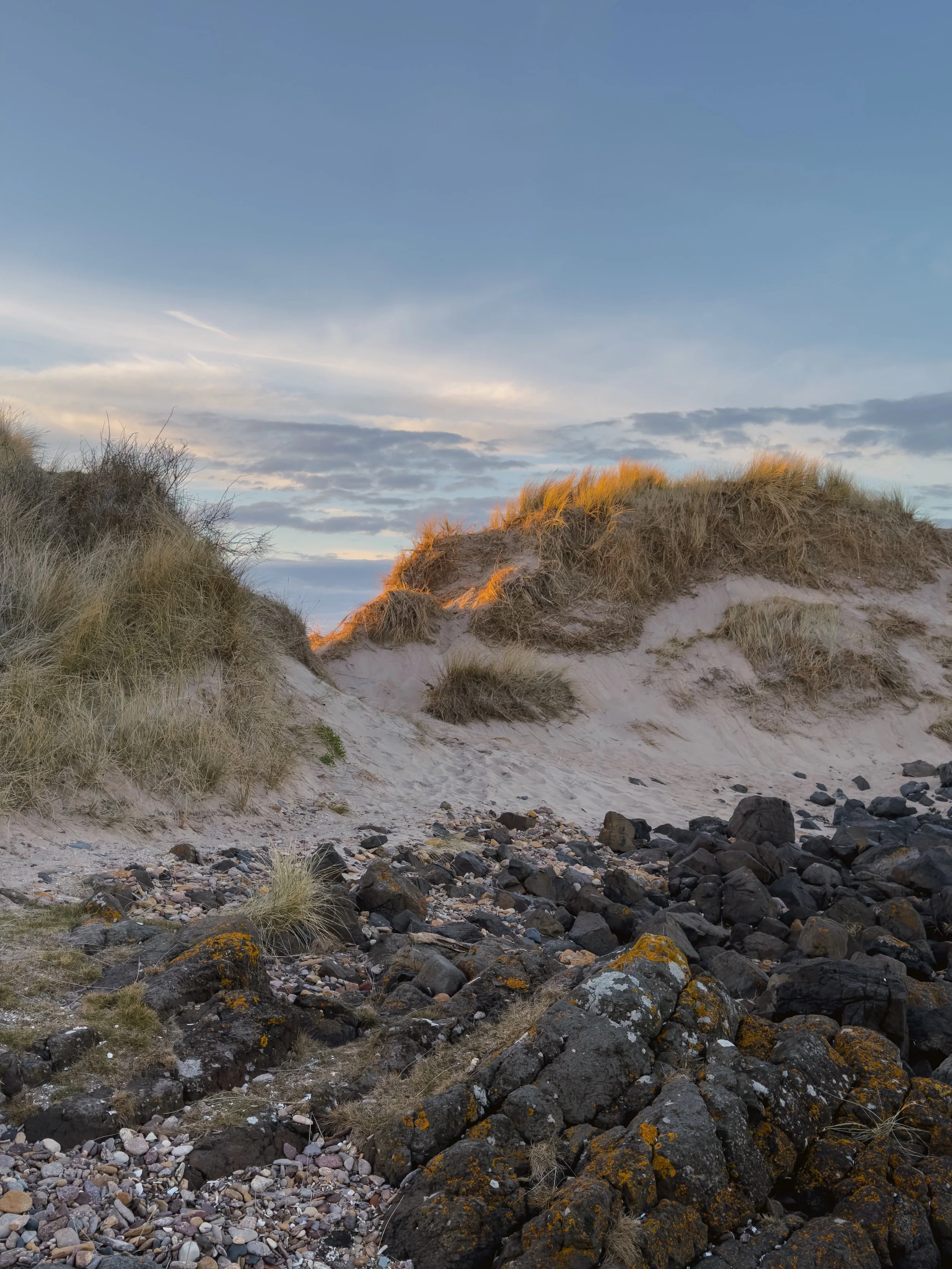 I’ve lots to share here from April and May, but first I’m returning to these last walks of winter, as the days were already stretching and we were feeling hopeful for the season that lay ahead. We started the month with a beautiful walk from Yellowcraig towards Eyebroughy and beyond, winding along the dunes as the light was glowing. I shared that post here, but wanted to include a few of my favourite photos in this post.